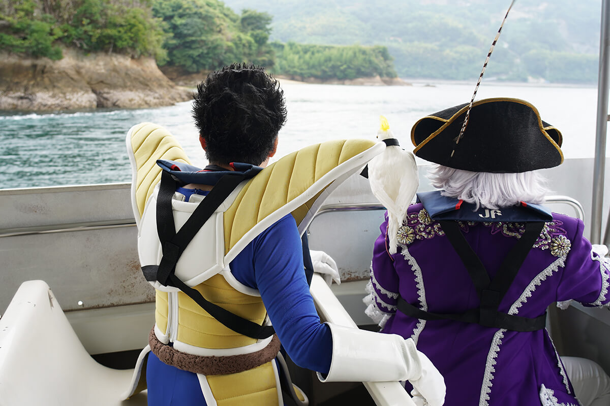 宇宙海賊とサイヤ人の王子が、愛媛の海賊に遭遇!? 普段は愛媛県と縁もゆかりもないお笑い芸人、ゴー☆ジャスさんとR藤本さんが、愛媛県今治市に上陸! 地元に語り継がれる村上海賊の歴史に触れ、その魅力をPRしました。
