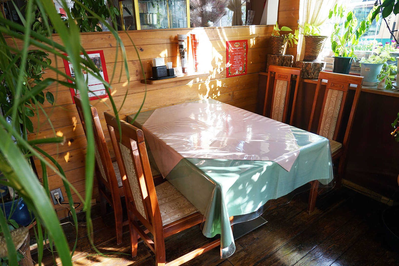増田さん:そうですね、“癒しの空間”を目指しているんです。店内には観葉植物を多く配置しているんです。テーブルも木製で、ゆったりした作りにしていて、他のお客様の目も気にせず過ごせるようにしています。うちで提供している料理って、急いで食べるものではないでしょう?だからこそ、ゆっくりくつろいでもらえるような空間にしたいと思っていて。