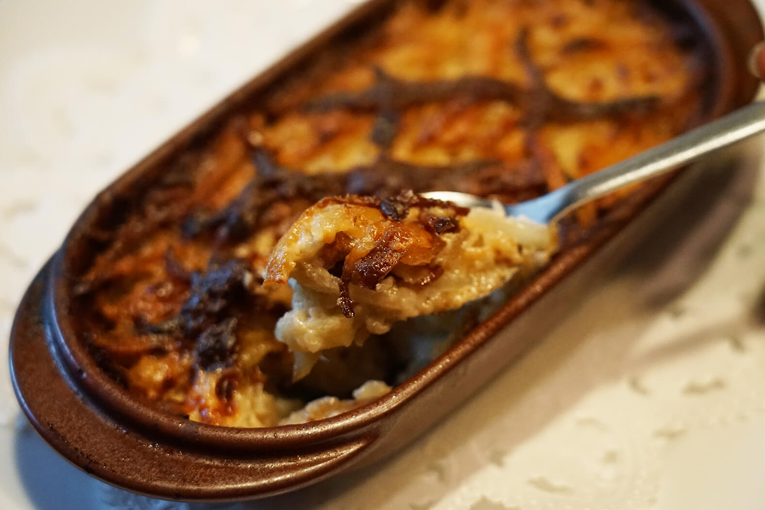 続いていただいたのは、スウェーデンの伝統料理「ヤンソンの誘惑」。全国的にも珍しい、アンチョビ入りのポテトグラタンです。カリッと香ばしいポテトに、塩気の効いたアンチョビのアクセントが絶妙で、まさにクセになる味。クリーミーで濃厚ながら、ぺろりと食べられてしまいます。