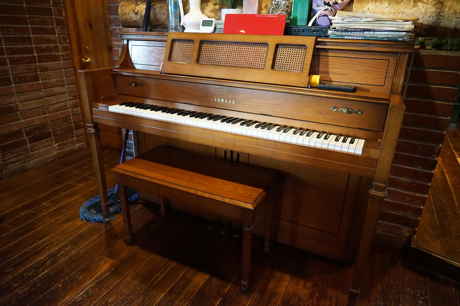 外観はおしゃれな一軒家ですが、一歩足を踏み入れると、薪ストーブやピアノが目に入り、観葉植物に囲まれた、北欧の家を訪れたような癒しの空間が広がります。