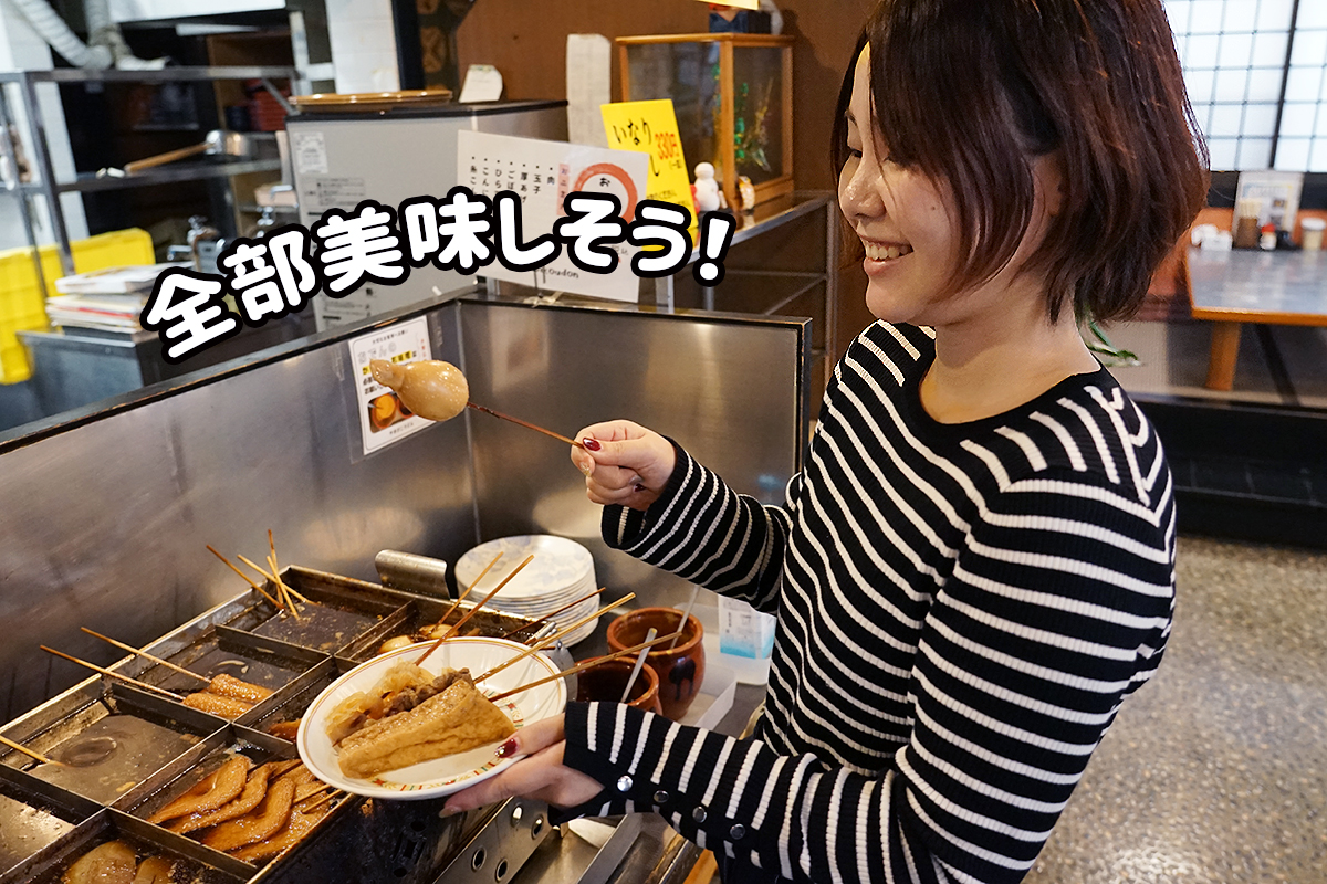 通年置いてあるというおでんは、素朴ながら丁寧に仕込まれた家庭的な味が魅力。「どれを食べようか…。全部美味しそう!」と選ぶ時間も楽しめます。