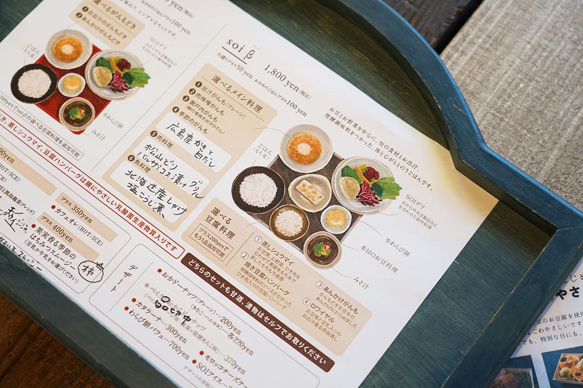 櫻井さん:「SOILIKKLE」は「ソイリクル」と読みます。名前の中の「SOI」は、大豆の「SOY」を文字った表記です。それに、「寄り添い(YORISOI)」という意味も重ねています。また、フランス語で SOI は「自己」、つまり「自分自身」という意味もあります。さらに、「Soul Of I」の頭文字として、自分自身の魂や心を大切にしながら生きていこう、そんな想いが立ち上がるようなお店にしたいという願いも込めています。