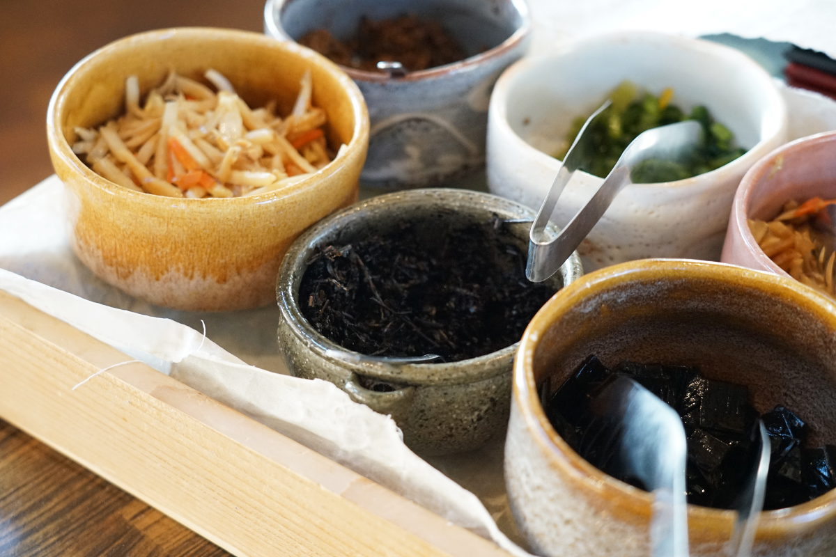 石鎚山系の伏流水や昔ながらの発酵調味料、旬の野菜、愛媛県産大豆。この土地に根ざした素材を使い、丁寧に作られた料理が並びます。