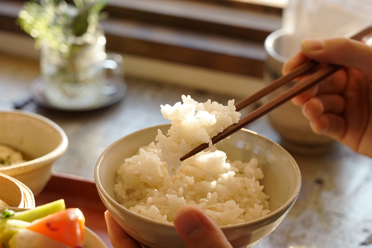 ご飯には、愛媛県産のお米を使用。西条産もち麦をブレンド。甘みがあり、しみじみと美味しい味わいです。