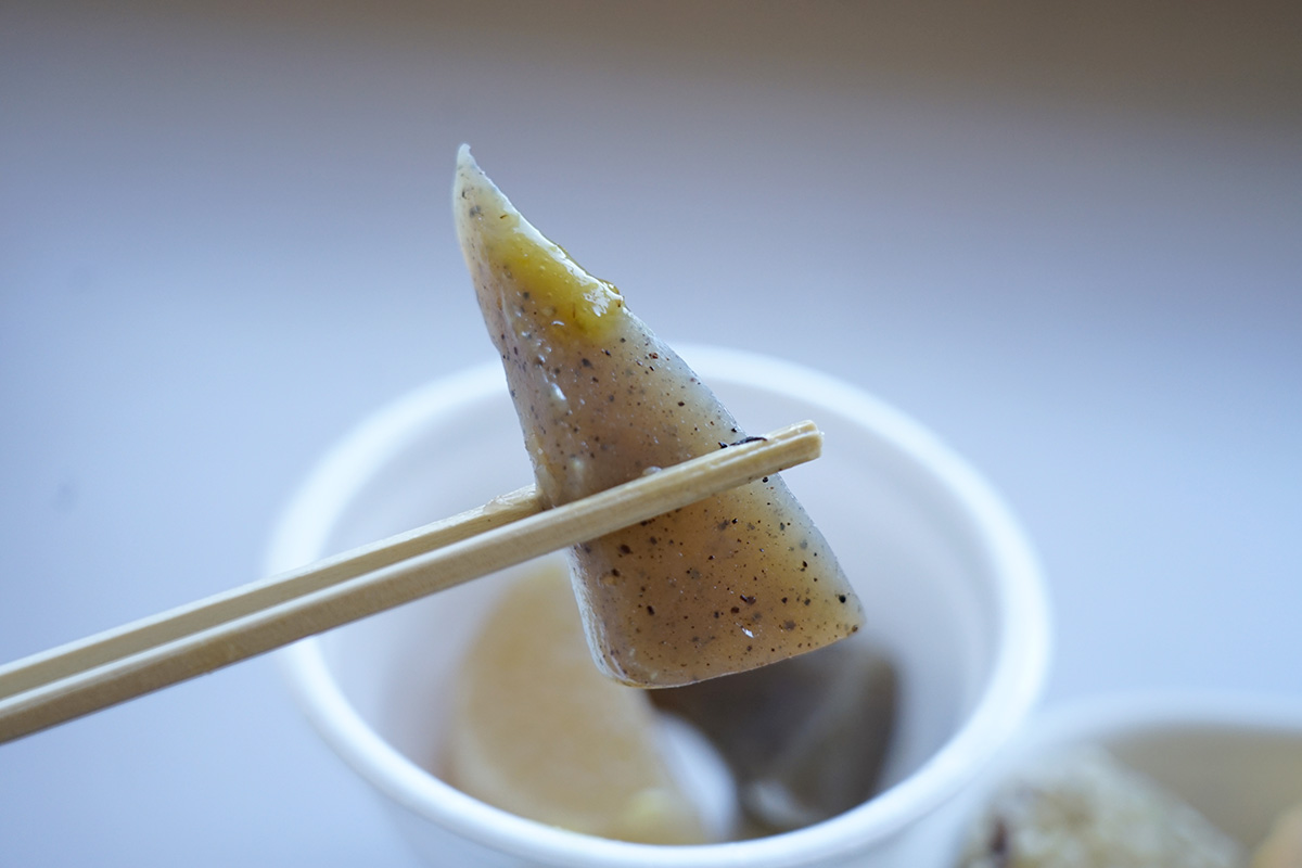 おでんは、もちろんそのまま食べても美味しいですが、みがらし味噌をつけて食べると、ピリッとした辛味を楽しめます。こんにゃくにつけるのが個人的にはおすすめです!