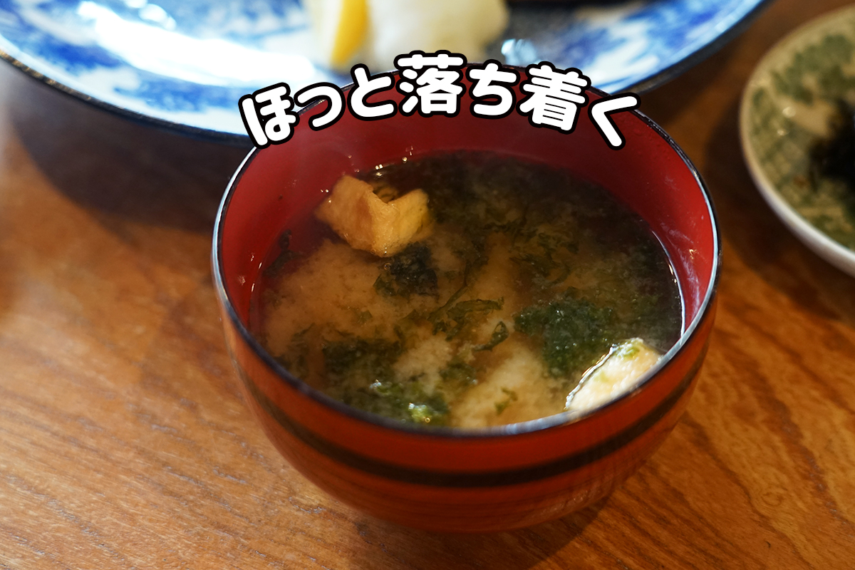 愛媛といえば甘めのお味噌汁が一般的で、山藤さんご夫妻はそれには驚いたそう!こちらではあえて甘い味噌は使っていないそうですが、それでも愛媛県民にも好まれる、バランスの良い味わいのお味噌汁でした。