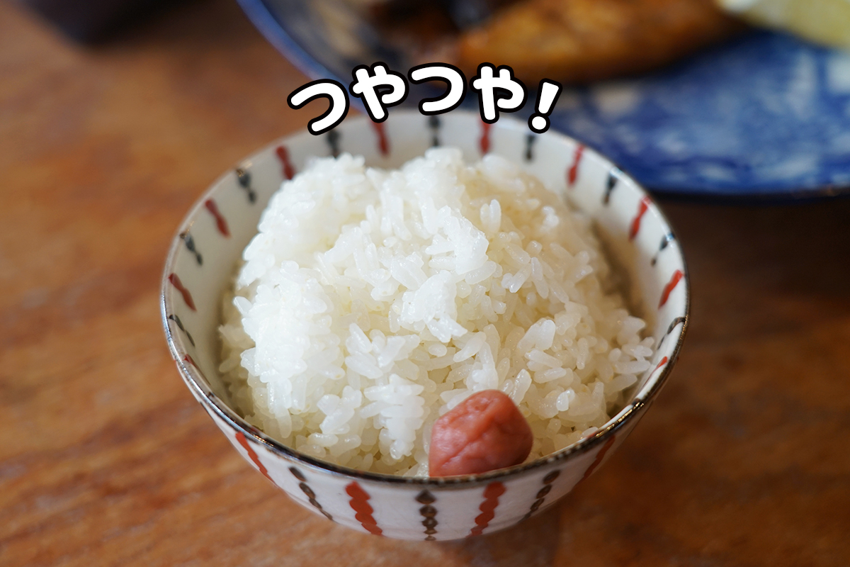 そして定食を引き立てるのが、ご飯とお味噌汁。お米は西条産の「ヒノヒカリ」を使用し、石鎚山の伏流水・打ち抜きで炊き上げています。