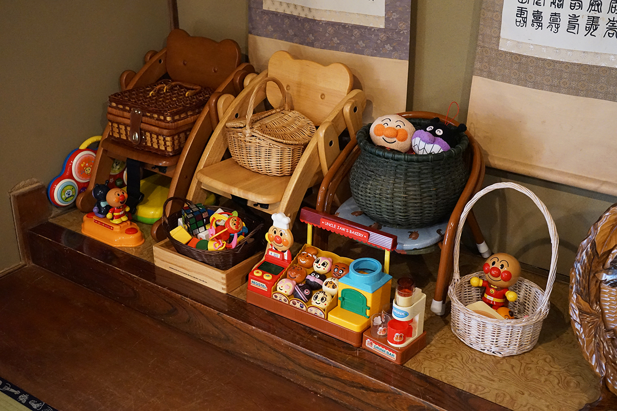 キッズスペースや子ども用のイス、おもちゃも完備されていて、お子さん向けにジュースやふりかけご飯など、ママやパパがゆっくり食事を楽しめるような工夫がされています。